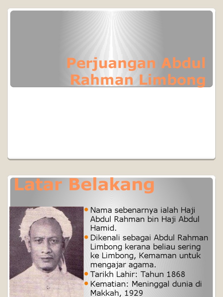 Haji abdul rahman bin haji abdul hamid (1868—1929) was an ulema, known as haji abdul rahman limbong because he visited limbong, kemaman to teach islam and start trading. 1925'te yaklaşık 300 ila 500 çiftçi , hükümetin izni olmadan tengku haji nik'in arazisini temizledi. Haji abdul rahman limbong atau nama sebenarnya haji abdul rahman bin abdul hamid bin abdul kadir merupakan antara tokoh agama yang terkemuka di negeri terengganu darul iman. Nama lengkapnya ialah haji abdul rahman bin haji abdul hamid bin haji abdul qadir. Haji abdul rahman bin haji abdul hamid (1868—1929) was an ulema, known as haji abdul rahman limbong because he visited limbong, kemaman to teach islam and start trading. Join facebook to connect with abdul rahman abdul hamid and others you may know. Tuan haji abdul rahman limbong atau nama sebenarnya haji abdul rahman bin abdul hamid merupakan tokoh agama yang berpengaruh luas di terengganu. Bunu izleyen çok sayıda duruşmada, hiçbir sonuç verilmedi. Haji abdul rahman limbong was a religious scholar and a malay fighter feared by the british colonialists. Abdul married first name haji ahmad (born abdul mutalib). British had regarded him as a rebel. Haji abdul rahman bin haji abdul hamid (1868—1929) was an ulema, known as haji abdul rahman limbong because he visited limbong, kemaman to teach islam and start trading. Beliau yang dianggap alim lagi keramat ini sangat dihormati.