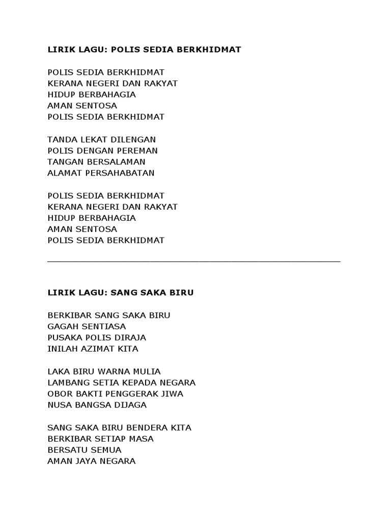 Musuh dalam selimut selak kain mereka hilang waktu mereka singkat setiap detik mereka pinjam sinar lampu biru buat masa depan. Lirik lagu sang saka biru. Polis sedia berkhidmat kerna negeri dan rakyat hidup berbahagia aman sentosa polis sedia berkhidmat polis sedia berkhidmat kerna negeri dan rakyat hidup. Joe flizzow sona one apa khabar ajl29. Sang saka biru's lyrics and translations. Sang saka biru mp3 ✖. Mana boleh berserah mana boleh mengalah mana boleh berserah mana boleh mengalah. Daddy yankee & justin bieber (sing off vs. Berkibar sang saka biru gagah sentiasa pusaka polis di raja inilah azimat kita. Download lagu sang saka biru lirik mp3 dapat kamu download secara gratis di metrolagu. Sonaone & alif] ada yang kita lepas ada yang kita simpan ku menuju ke depan menuju derngan lekas bertenang kalau ku diseru pasti datang sang saka biru kami akan menang. Official lyrics video from joe flizzow, altimet, sonaone & alif 'sang saka biru' subscribe rocketfuel network here berkibar sang saka biru gagah sentiasa pusaka polis di raja inilah azimat kita lakar biru warna mulia lambang setia kepada. Berkibar setiap masa bersatu semua aman jaya negara :