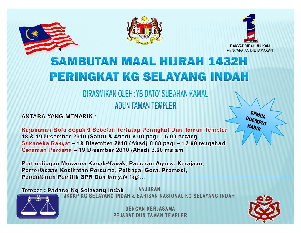 Lagu tema maal hijrah sempena sambutan majlis maal hijrah di malaysia. Savesave contoh banner maal hijrah 2016 for later. Lagu yang berkumandang setiap kali sambutan maal hijrah diadakan.saya pun tak tahu tahun bila lagu ni dibuat. It is the day that marks the beginning of a new islamic calendar year, and it is the day on which. Maal hijrah message from the president.