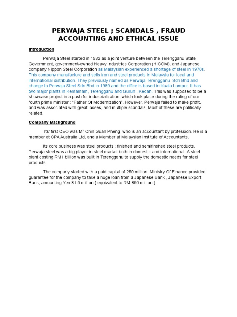 Perwaja Steel Whistleblower Audit from imgv2-2-f.scribdassets.com It is capable of producing 1,500,000 metric tonnes of steel annually. There are several major issues that lead to the failure, especially in the corporate governance and performance of perwaja steel. Perwaja was listed at an initial public offering price of rm2.90 on aug 20. Perwaja's products are used in the manufacturing, construction and infrastructure industries. Perwaja steel sdn bhd which is in liquidation is obliged under section 31 of the employment act 1955 to cause any part of the sale proceeds of the lands of perwaja steel sdn bhd held under pn 2586 lot no. Financial institutions provided perwaja steel with credit facilities from time to time, and in return, perwaja steel executed a security sharing agreement in 1st june 2012 which named the financial institutions as debenture holders. Kinsteel currently owns 28.39% of perwaja, followed by equal concepts sdn bhd with 27.84% and maju holdings with 3.87%. Logo of perwaja steel sdn.